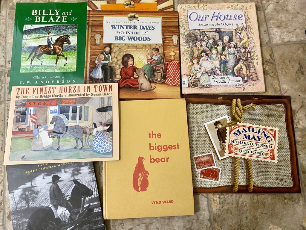 I write Westerns. As such, I’m really excited to read some of these books with the kids and share a little more of that side of my life with them. So far this month, our favorites have been Cowboy Charlie, the Little House adaptations, and Mailing May.