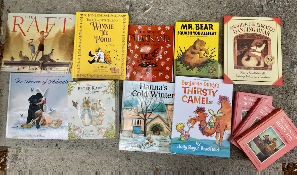 Again, I chose a collection of primarily fiction stories for our animal study this month. In addition to these stories, I have had the opportunity to have some real-life experience with animals, including squirrels in the yard, feeding my brother-in-law’s chinchilla and rabbit, and visiting a family friend’s sheep farm (Millie loved letting a newborn lamb suck on her finger!)